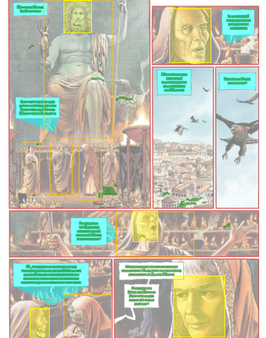 Si initialement des approches classiques de traitement d’images ont été utilisées, l’équipe s’est rapidement orientée vers le développement d’approches basées sur les apprentissages profonds (deep learning) en développant des architectures dédiées, puis plus récemment sur les Transformers, les VLMs et les LLMS. Ces approches nous ont permis d’obtenir une meilleure compréhension des images et des scènes représentées sur les pages de bandes dessinées, de comics et même des mangas qui possèdent un style graphique très différent. Nos approches permettre la reconnaissance du texte et des onomatopées, la création de liens sémantiques entre les personnages et les textes, la reconnaissance des personnages et leur identification. Les travaux le plus récents portent sur la compréhension de la scène et de son contexte (lieu, moment, personnages impliqués, etc.).